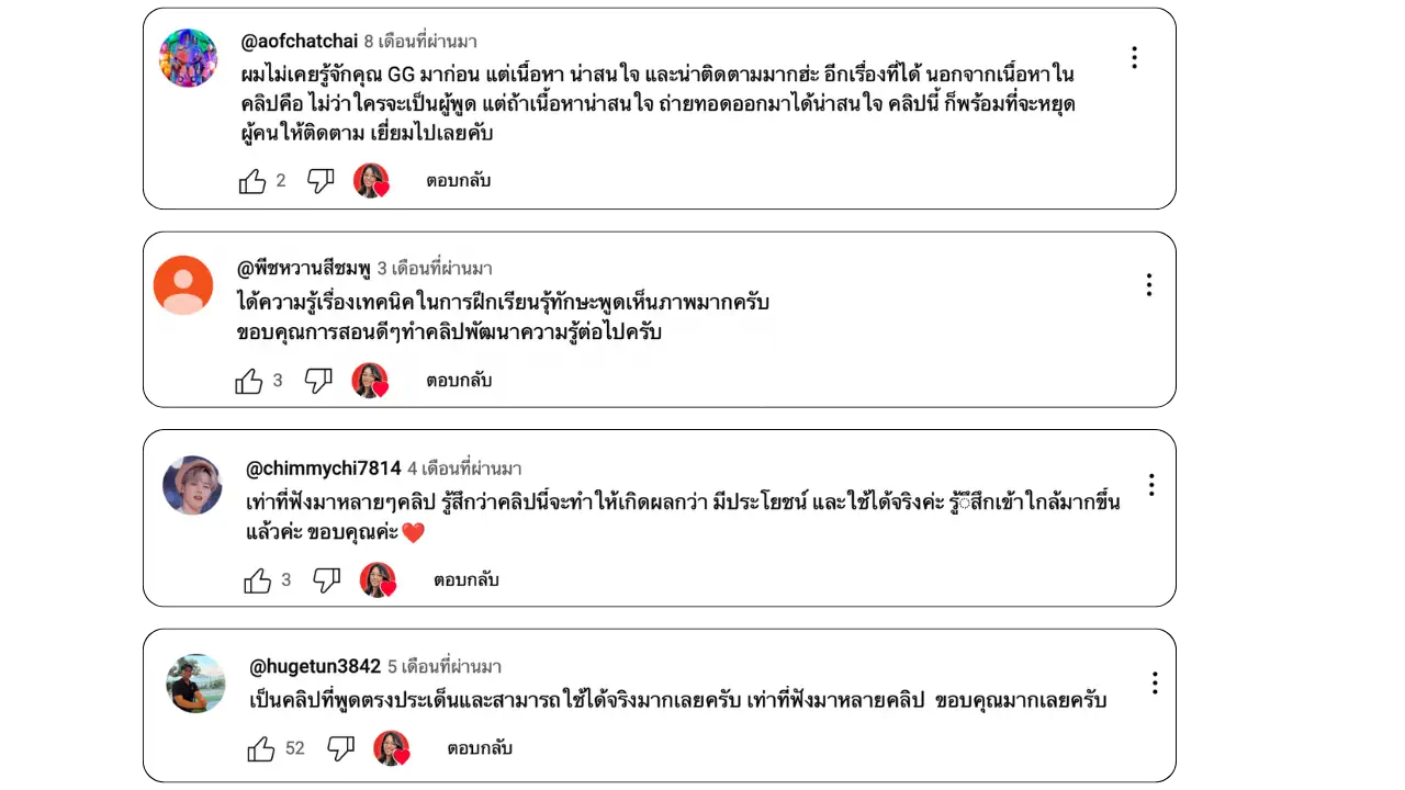 ด้านล่างนี้คือตัวอย่างวิดีโอจากช่องของยูปทูป GG World ช่องที่จี้สร้างคอนเทน์แนวพัฒนาตัวเองและสร้างแรงบันดาลใจใหม่ๆ ทุกสัปดาห์